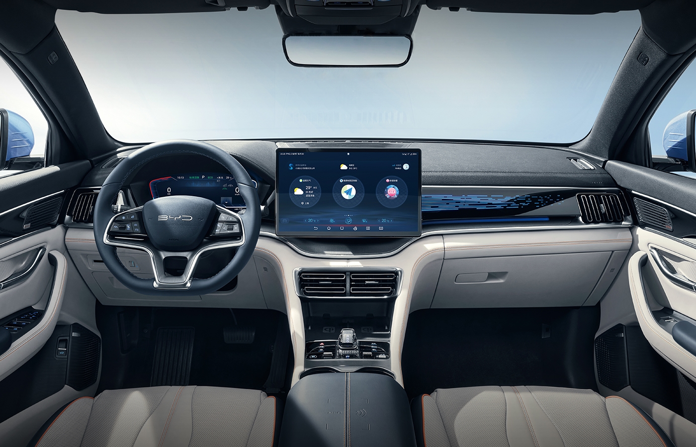 Приборная панель и система мультимедиаЦентральный мультимедийный дисплей BYD Song Plus EV представляет собой цифровую HD-панель с диагональю 12,3 дюйма, что гарантирует отличную четкость и яркость изображения. Дисплей имеет возможность поворота, что добавляет удобства при использовании и позволяет настроить его под предпочтения водителя. Аудиосистема Infiniti Luxury Audio включает 10 мощных динамиков, которые обеспечивают высококачественное звучание и создают насыщенную акустическую атмосферу. Также автомобиль оснащен двойным беспроводным зарядным устройством мощностью 15 Вт, что позволяет удобно подзаряжать мобильные устройства во время поездки. |
